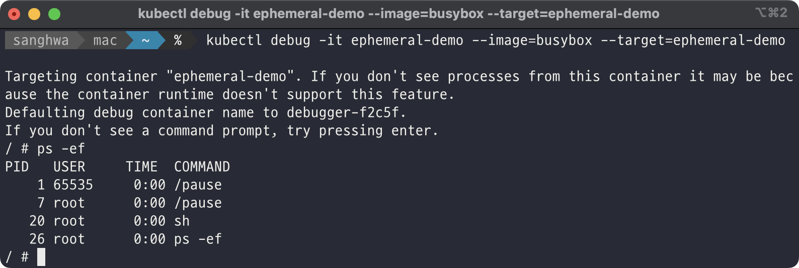 이상으로 Ephemeral Container 사용법에 대해서 알아보았습니다.